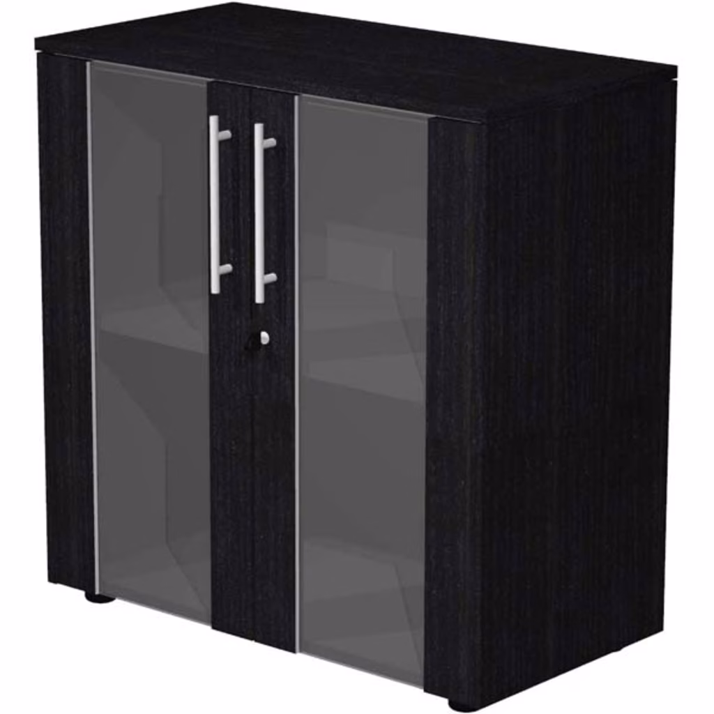 Libreria singola bassa c/ante batt.vetro fumè STYLE cm 82,8x43xH81,4 finitura nero venato frassino