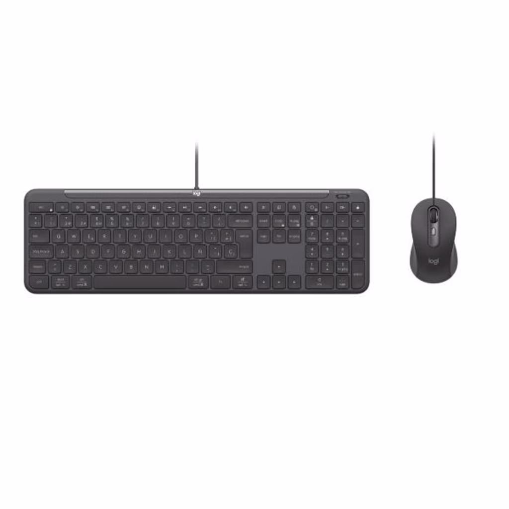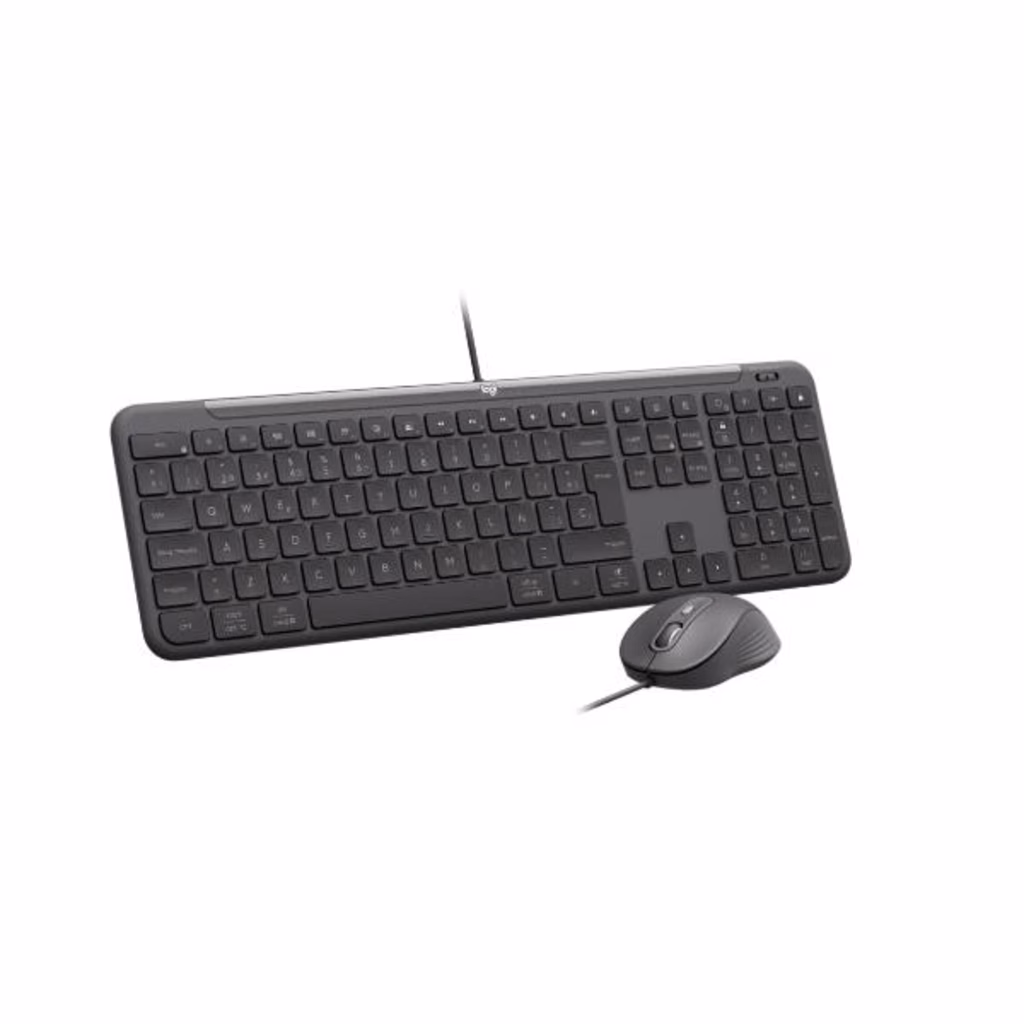 Kit di mouse e tastiera USB-C per più sistemi operativi con digitazione in stile laptop e mouse adatto a entrambe le mani per gli ambienti di lavoro che richiedono connettività cablata.