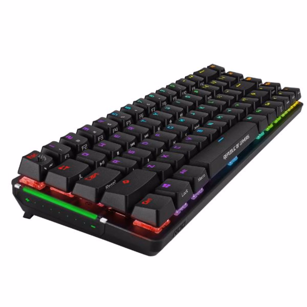 Tastiera da gioco meccanica wireless ROG Falchion NX 65% con 68 tasti, illuminazione wireless Aura Sync, pannello touch interattivo, custodia protettiva per tastiera, interruttori ROG NX e durata della batteria fino a 450 ore.