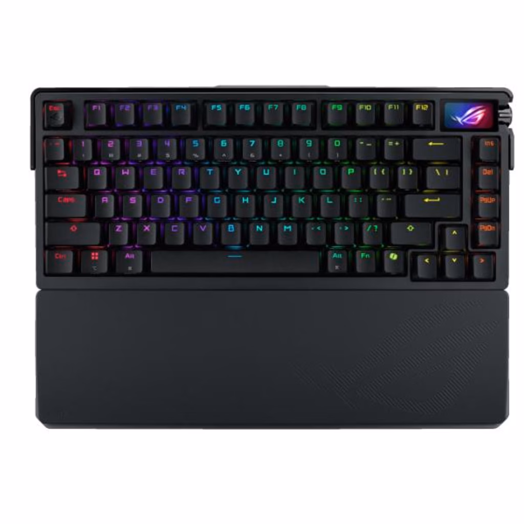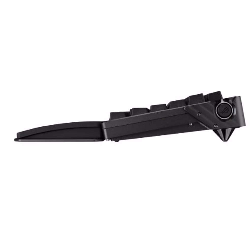 ROG Azoth Extreme è una tastiera gaming personalizzabile al 75% con telaio in lega di alluminio e struttura in metallo. È dotata di una frequenza di trasmissione di 8000 Hz con ROG Polling Rate Booster e di oltre 1600 ore di durata della batteria in modalità wireless ROG SpeedNova a 2,4 GHz. Il touchscreen OLED aggiornato e la manopola a tre vie consentono di monitorare il sistema e di effettuare regolazioni rapide. La piastra di posizionamento in fibra di carbonio garantisce una digitazione nitida, mentre tre strati di smorzamento assorbono le vibrazioni. Un supporto a guarnizione regolabile con interruttore a paletta offre due preferenze di digitazione.