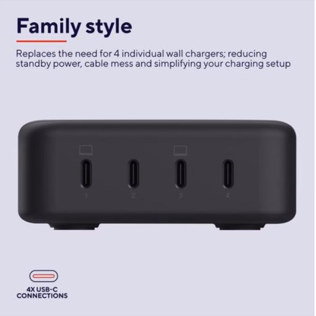 Ricarica in un lampo. Con 4 porte USB-C, questo caricabatterie ti consente di caricare quattro dispositivi contemporaneamente, rendendolo perfetto per mantenere il tuo laptop, tablet, telefono e qualsiasi altra cosa ti serva accesa mentre sei al lavoro, a casa o in studio.