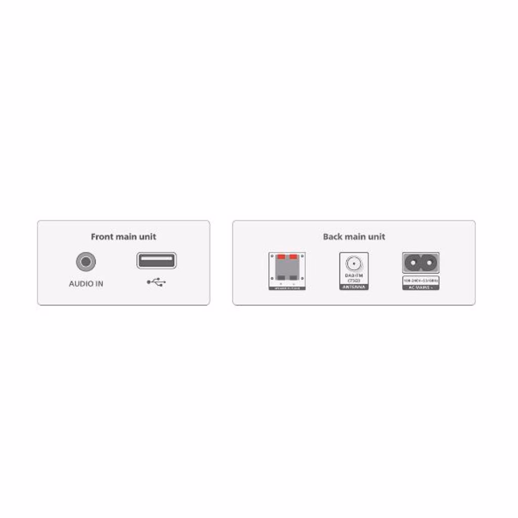 Con l'unità centrale e i cabinet degli altoparlanti in due tonalità, questo elegante microsistema richiama il design degli apparecchi Hi-Fi "old style". La struttura compatta rende il sistema facile da posizionare in casa e la parte superiore dell'unità è dotata di pulsanti per l'associazione, la selezione della sorgente e il controllo della riproduzione/sintonizzazione.