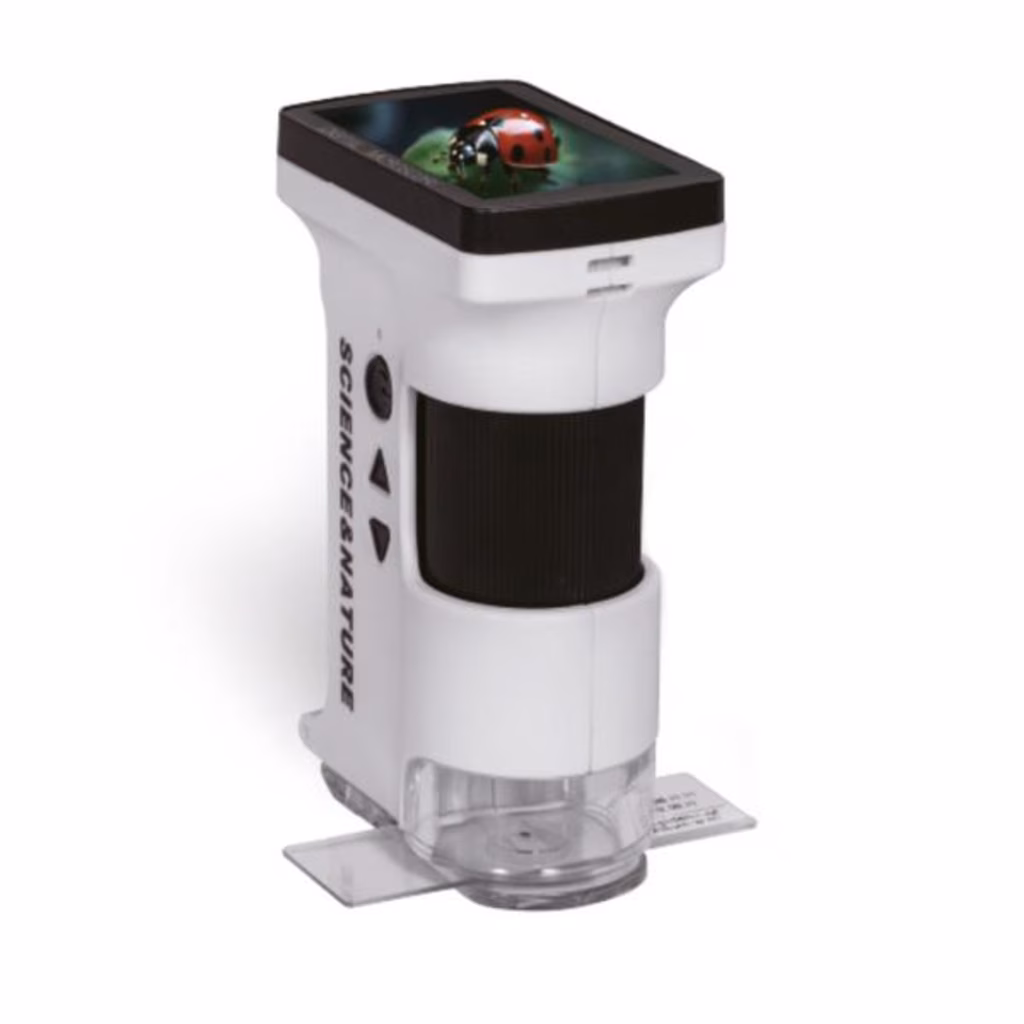 Il Microscopio digitale DiProgress MIC270 è uno strumento portatile e facile da usare. Con ingrandimenti fino a 80x e risoluzione fotografica da 12MP ti permette di visualizzare e riprendere i tuoi campioni sul display a colori. Adatto a tutti gli utilizzi, dalla botanica, all entomologia, dalla mineralogia all osservazione di vetrini.