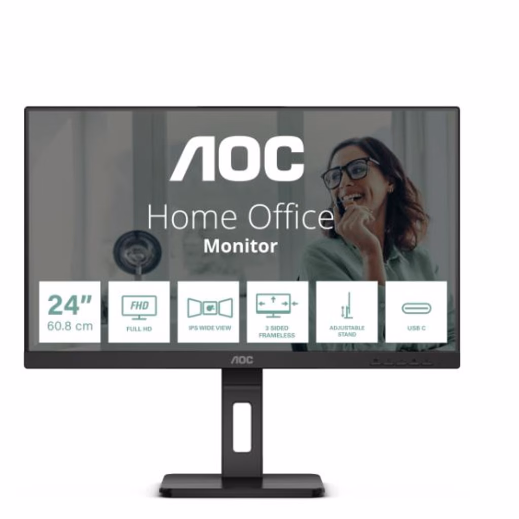 Display IPS FHD da 23,8" piatto su 3 lati per una produttività semplice e costanteAOC 24P3CV è un monitor IPS a schermo piatto da 23,8" con un attraente design a cornice ultrasottile su tre lati che ti aiuterà a trarre il massimo dal tuo stile di lavoro flessibile. Goditi una qualità d'immagine vivida e realistica grazie alla risoluzione Full HD (1920 x 1080) abbinata a una luminosità di 300 nit e all'ampio angolo di visione di 178/178°. Questo modello è dotato di altoparlanti integrati da 2 W + 2 W per i tuoi contenuti multimediali ogni volta che ne hai bisogno. 24P3CV è pronto per aumentare la tua produttività con USB-C che supporta Power Delivery fino a 65 W, trasferimento dati e modalità DP-alt. La connettività di questo monitor è aumentata da hub USB, RJ-45 e DP-out. Tenendo ben presente la sostenibilità, una serie di certificazioni ambientali tra cui EPA, TCO ed EPEAT completa questo monitor.