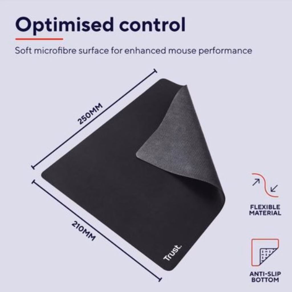 Crea una superficie ottimale per il mouse con questo tappetino per mouse piatto. La trama della superficie liscia offre grande precisione al cursore del mouse. Non importa quale mouse usi: questo tappetino per mouse è compatibile con tutti i tipi di sensori.