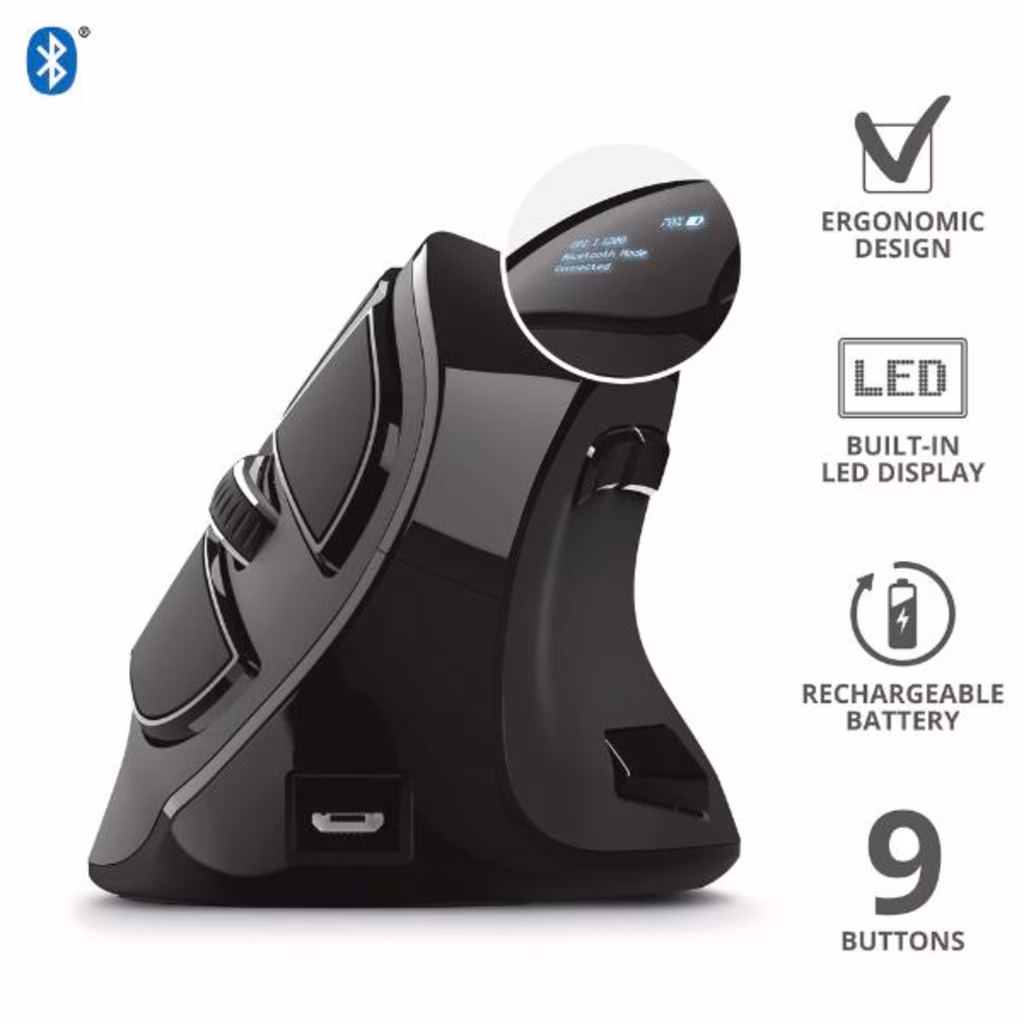 Mouse verticale wireless ergonomico ricaricabile con display digitale TRUST VOXX