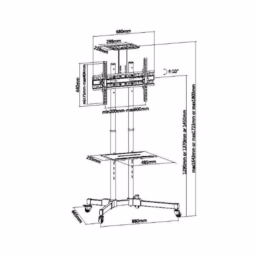 Il carrello supporto per singola TV di equip® con un design elegante, tecnico e funzionale è stato progettato per fornire una solida soluzione di presentazione per la maggior parte dei televisori a LED a schermo piatto LCD. Le sue staffe TV a schermo piatto in verticale consentono una regolazione in altezza senza sforzo per soddisfare le diverse esigenze di visualizzazione in qualsiasi momento. L'inclinazione libera consente una facile regolazione dell'angolo e riduce l'abbagliamento da luci o finestre per ottenere il massimo comfort di visione. La solida base offre ulteriore sicurezza rimuovendo la possibilità di inciampare e garantisce prestazioni affidabili per anni di utilizzo. La gestione interna dei cavi nasconde i fili alla vista per mantenere un aspetto privo di ingombri. Ideale per conferenze, esposizioni pubbliche o altre presentazioni professionali.