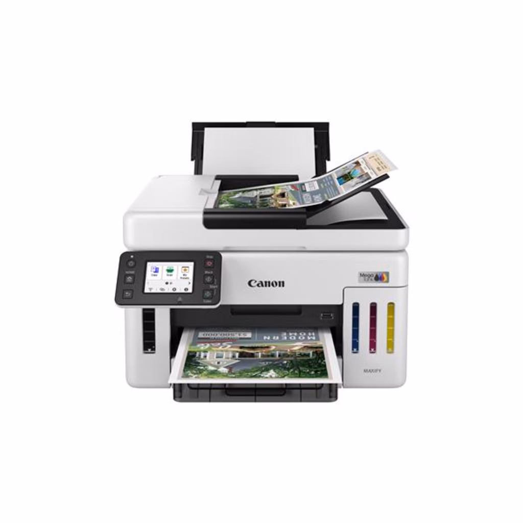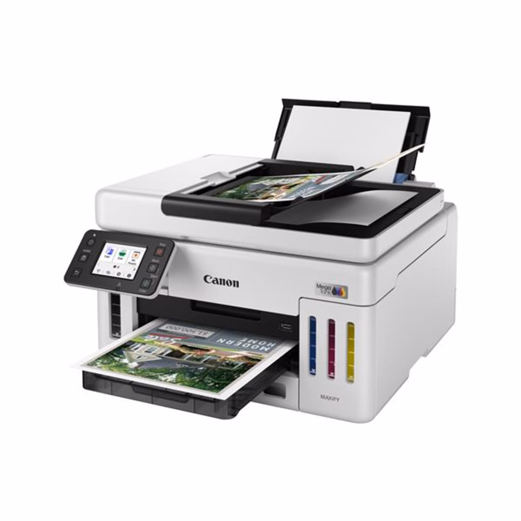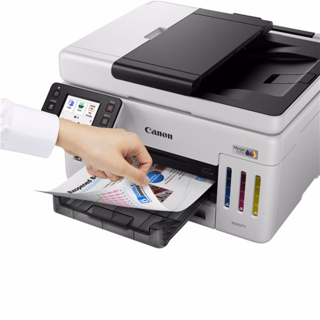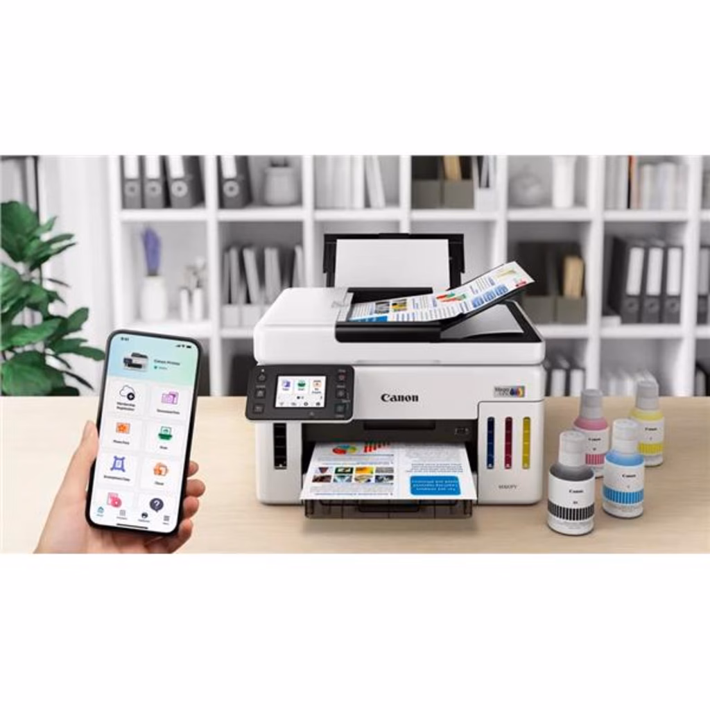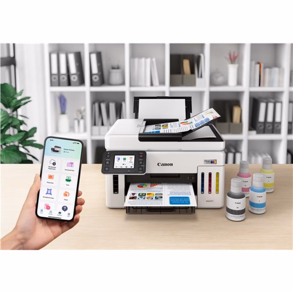 Risparmia sui costi totali di stampa con la stampante inkjet 3 in 1 a colori ricaricabile MegaTank Canon MAXIFY GX6150. Con una resa di 14.000 pagine¹ da un set di flaconi di inchiostro a colori o fino a 6.000 pagine¹ da un flacone di inchiostro nero, manterrai bassi i costi legati alla stampa quotidiana ad alto volume.