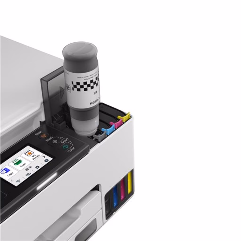 Gli economici flaconi ricaricabili consentono di tagliare i costi dei volumi di stampa elevati. Puoi stampare fino a 3.000 pagine con un singolo flacone di inchiostro nero e fino a 3.000 pagine con un set di inchiostri completo.2
