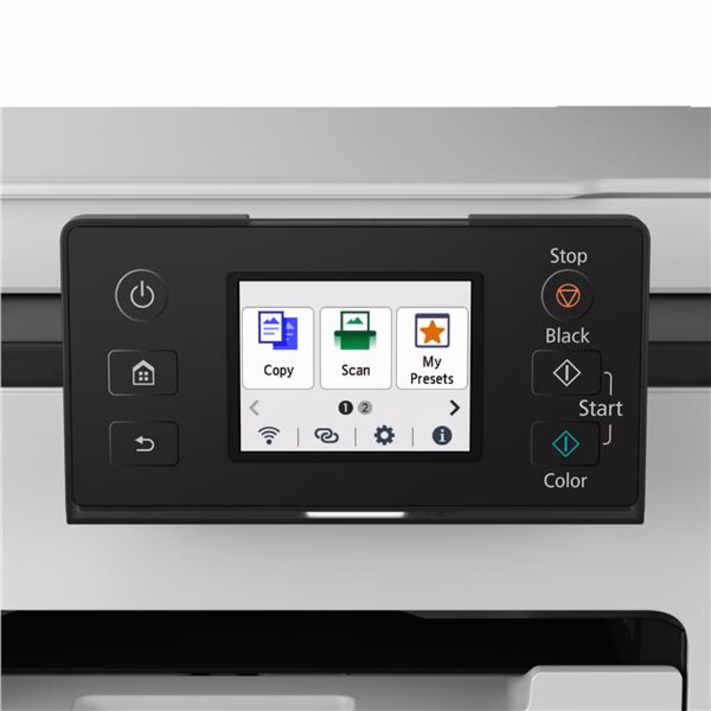 Grazie al design con funzionamento frontale, che semplifica l'accesso, la stampante può essere posizionata anche negli spazi più ristretti o contro le pareti. Facile da usare grazie allo schermo LCD inclinabile da 2,7 pollici, alla spia di stato e all'interfaccia utente intuitiva.