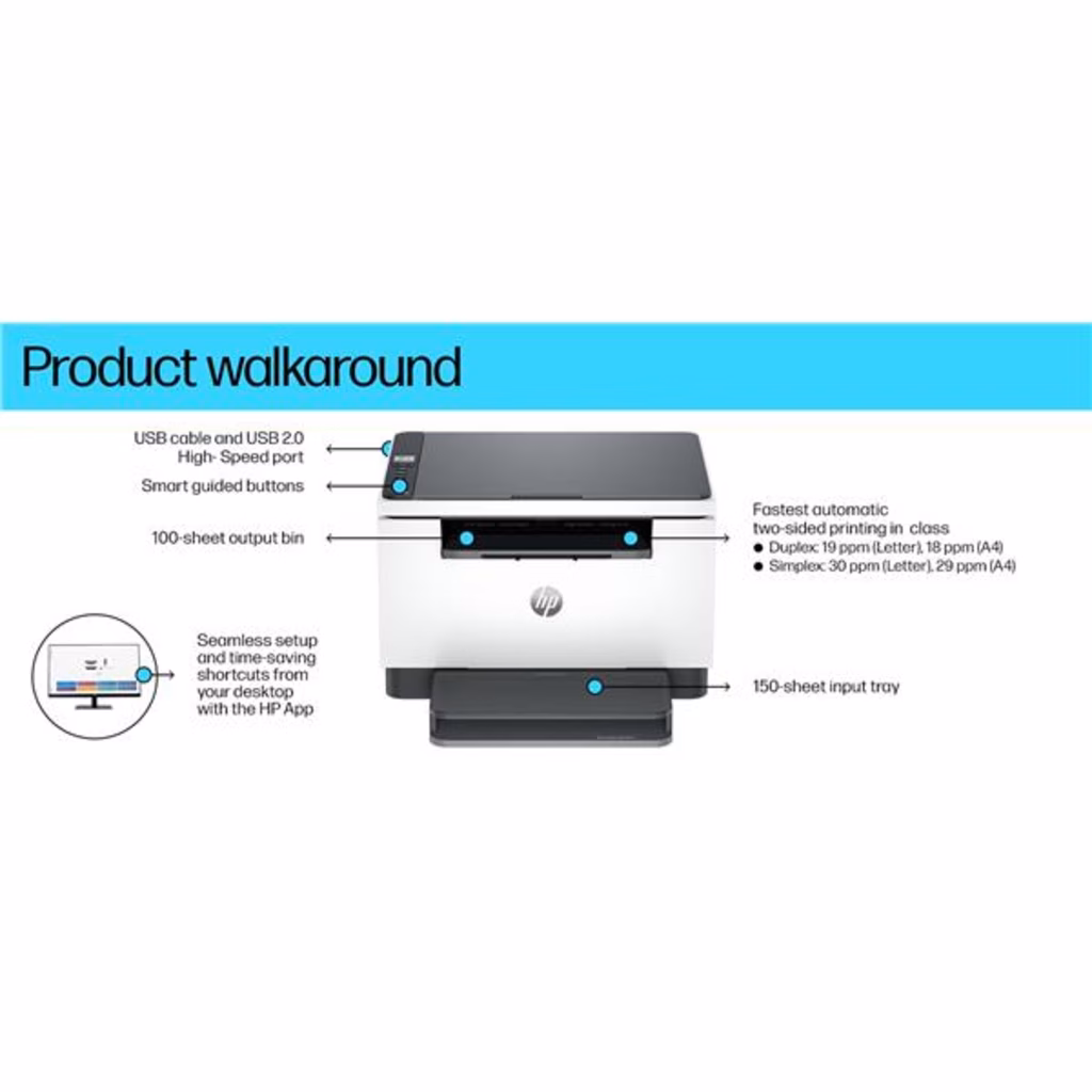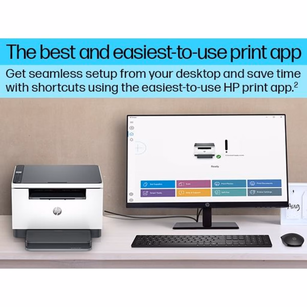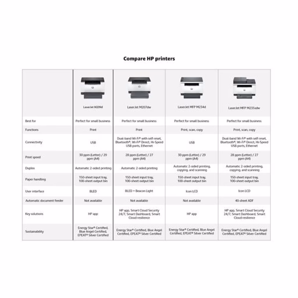 Aumenta la produttività grazie a una stampante monocromatica compatta, che ti offre: stampa fronte/retro rapida, funzionalità di copia e scansione, configurazione semplificata e anche Scorciatoie per risparmiare tempo con l'app HP Smart.