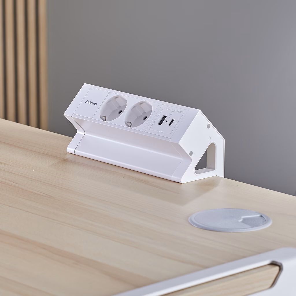 Ricarica i tuoi dispositivi con facilità e mantieni la scrivania ordinata grazie a questo modulo di alimentazione da scrivania con accesso immediato - dotato di: 2 prese di corrente (230V), 1 porta USB-A (potenza massima 18W), 1 porta USB-C (potenza massima 30W) - installazione semplice tramite morsetto superiore, compatibile con scrivanie di spessore compreso tra 10 e 45 mm, cavo di alimentazione da 2 metri con spina, per un'installazione flessibile e senza complicazioni - struttura robusta e durevole