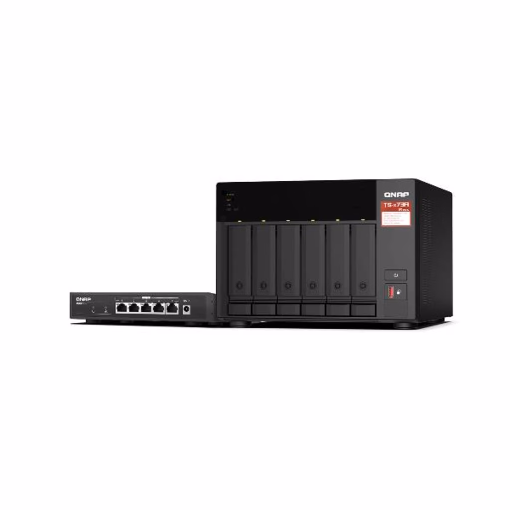 6-bay 3.5" HDD TOWER NAS (TS-673A-8G) with 5 Ports 2.5GbE Unmanaged Switch (QSW-1105-5T), Bundle NAS + SWITCH