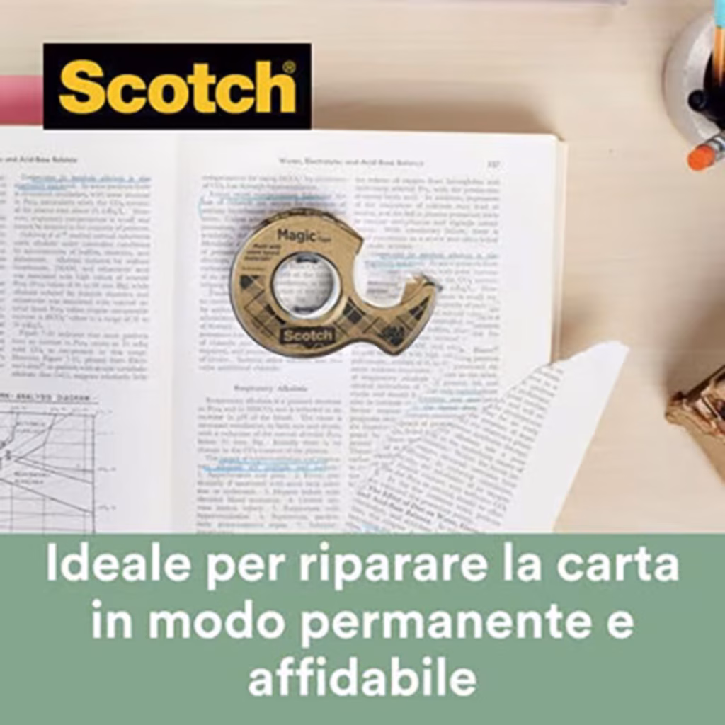 Nastro adesivo invisibile SCOTCH MAGIC a base vegetale mm 19x20 m 1 rotolo + 1 dispenser