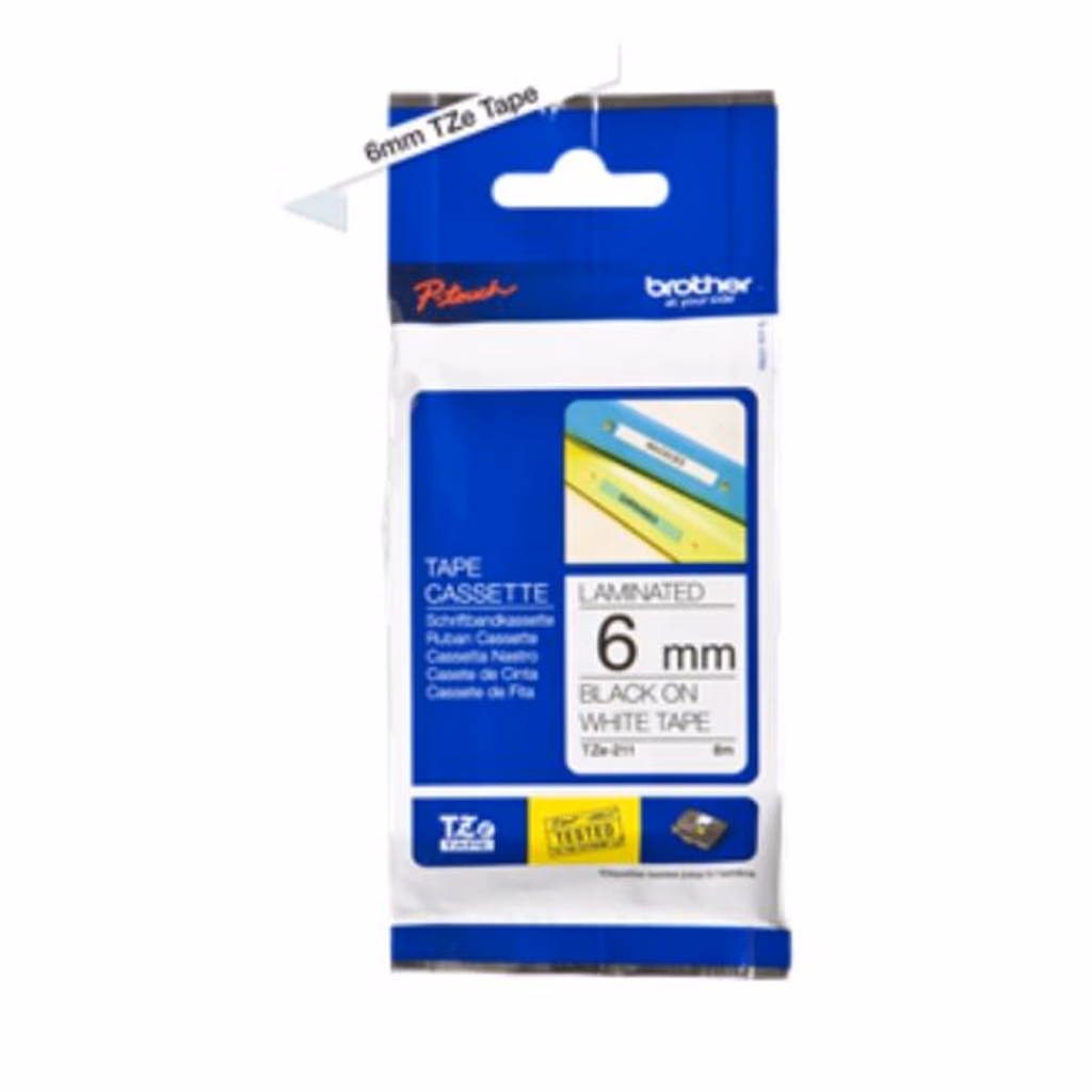 Nastro BROTHER TZE-211 mm 6x8 mt nero/bianco