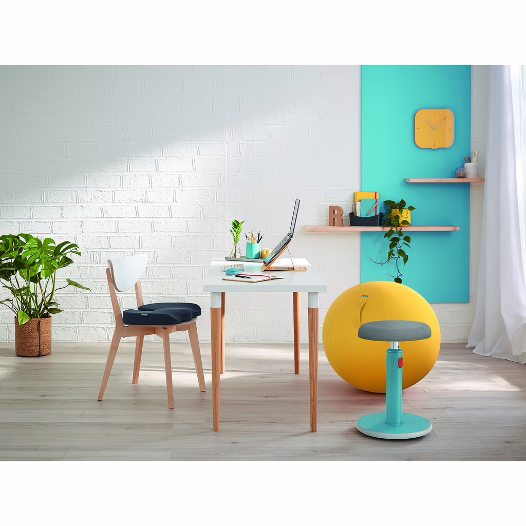 La palla da seduta Leitz Ergo Cosy Active Sitting Ball incoraggia il movimento della schiena e dei muscoli centrali, migliorando la postura e alleviando il mal di schiena. Ideale da usare come sedia da scrivania per mantenerti attivo mentre lavori, come palla da yoga o per lo stretching della schiena, la fisioterapia e gli allenamenti con la palla in palestra. Veloce e facile da gonfiare, viene fornita con una pompa a mano, 2 attacchi e ha una maniglia per trasporto robusta che la rende facile da trasportare da una stanza all'altra. Con il suo design minimalista e i colori con finitura opaca, questa elegante palla da ginnastica migliora la salute e il benessere creando il perfetto ambiente di lavoro attivo. Abbinala ad altri prodotti Leitz Ergo per uno spazio di lavoro accogliente e flessibile che ti tiene in movimento tutto il giorno.