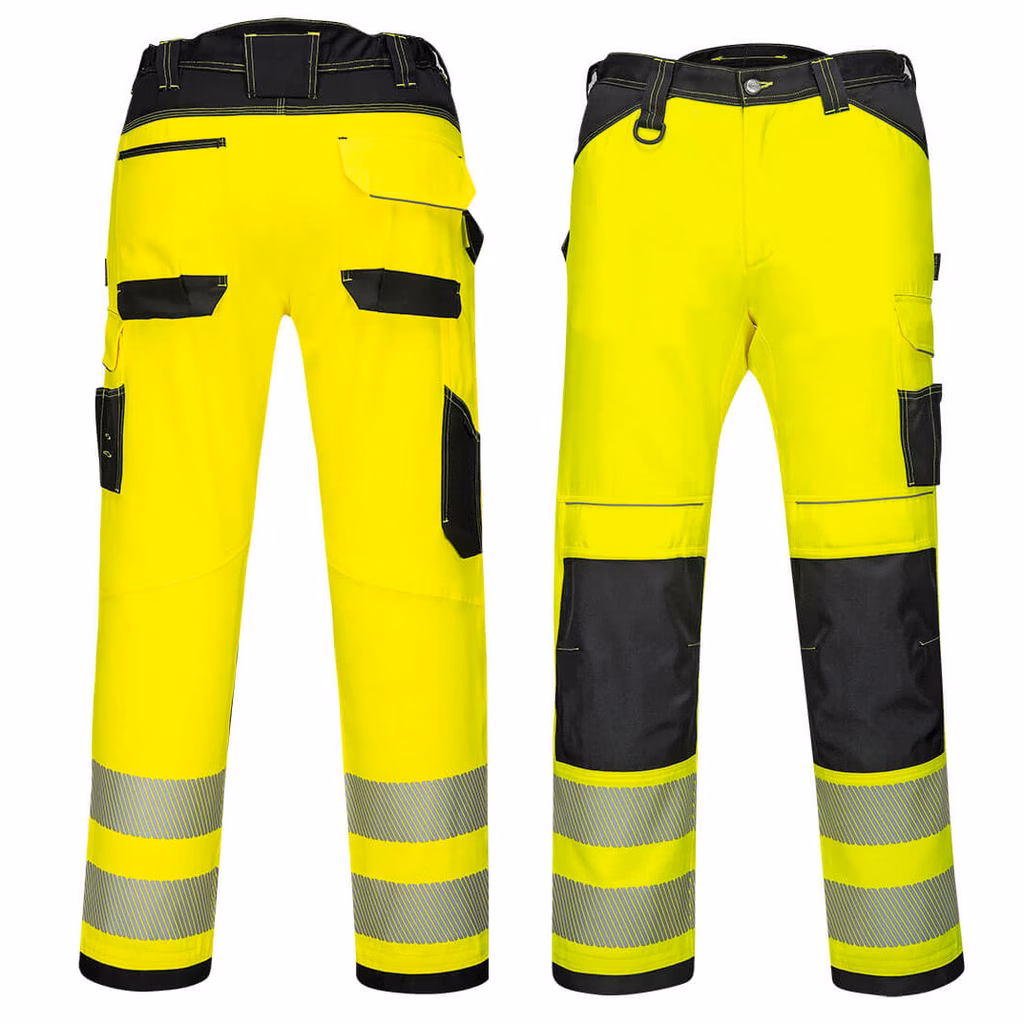 Innovativo pantalone stretch ad alta visibilità con tessuto bielastico ad alte prestazioni per offrire la massima libertà di movimento durante il lavoro. Le caratteristiche ingegnose includono il nastro HiVisTex Pro, tasche per ginocchiere con caricamento dall'alto e una tasca sulla coscia multidirezionale di facile accesso per riporre al sicuro telefono, chiavi e strumenti. Rinforzo in tessuto Oxford nei punti chiave di abrasione e cuciture triple per la massima durata.