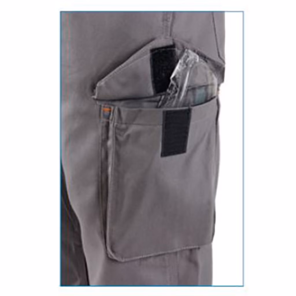 Pantalone invernale foderato, bicolore multitasche con cuciture a contrasto, elastico in vita e soffietto alle ginocchia per unottima vestibilità, cerniera coperta, cavallo rinforzato, due taschee taschino portamonete davanti, due tasconi posteriori di cui uno chiuso da pattina con velcro, tascone con pattina chiusa da velcro su gamba sinistra, tasca portametro con taschino supplementare chiuso da velcro e passante portamartello su gamba destra - composizione tessuto: 100% cotone
