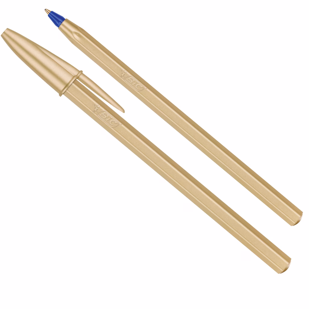 Penna a sfera colore blu BIC CRISTAL GLACÉ fusto oro punta media mm 1