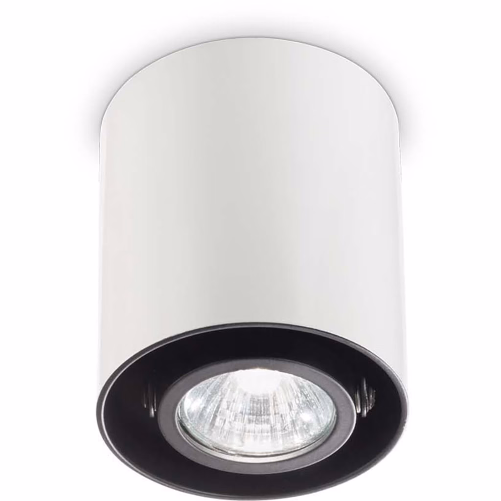 Corpo luce in metallo con sezione tonda. Nero all'interno e bianco all'esterno. Diffusore interno orientabile. Ø 9 x H 9 cm GU10 max 1 x 28W Lampadina inclusa IP20