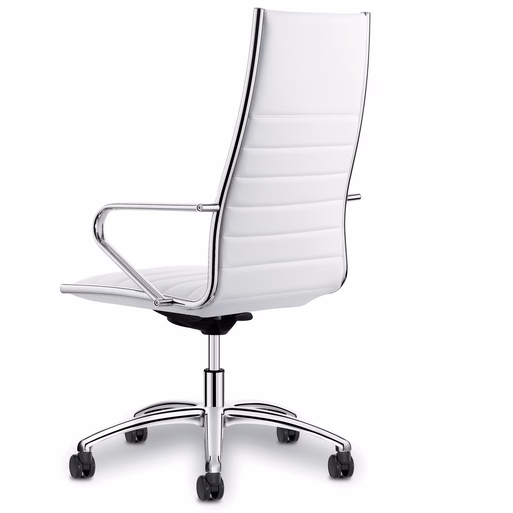Estetica raffinata. La collezione Classic arreda lo spazio ufficio con sedute direzionali con schienale alto, sedute manageriali e meeting, caratterizzate da un design essenziale. Il telaio, in acciaio cromato o verniciato nero opaco, è completato dal basamento a cinque razze disponibile nelle finiture alluminio lucido e alluminio nero opaco. Nella versione nera copribracciolo tappezzato. Ruote gommate frenate (nella versione con struttura nera ruote di design cave). Movimento regolato da meccanismo oscillante con regolatore di tensione in funzione del peso dell'utilizzatore. Proposta con rivestimenti in pelle Panama oppure in ecopelle Nx. Garanzia 5 anni