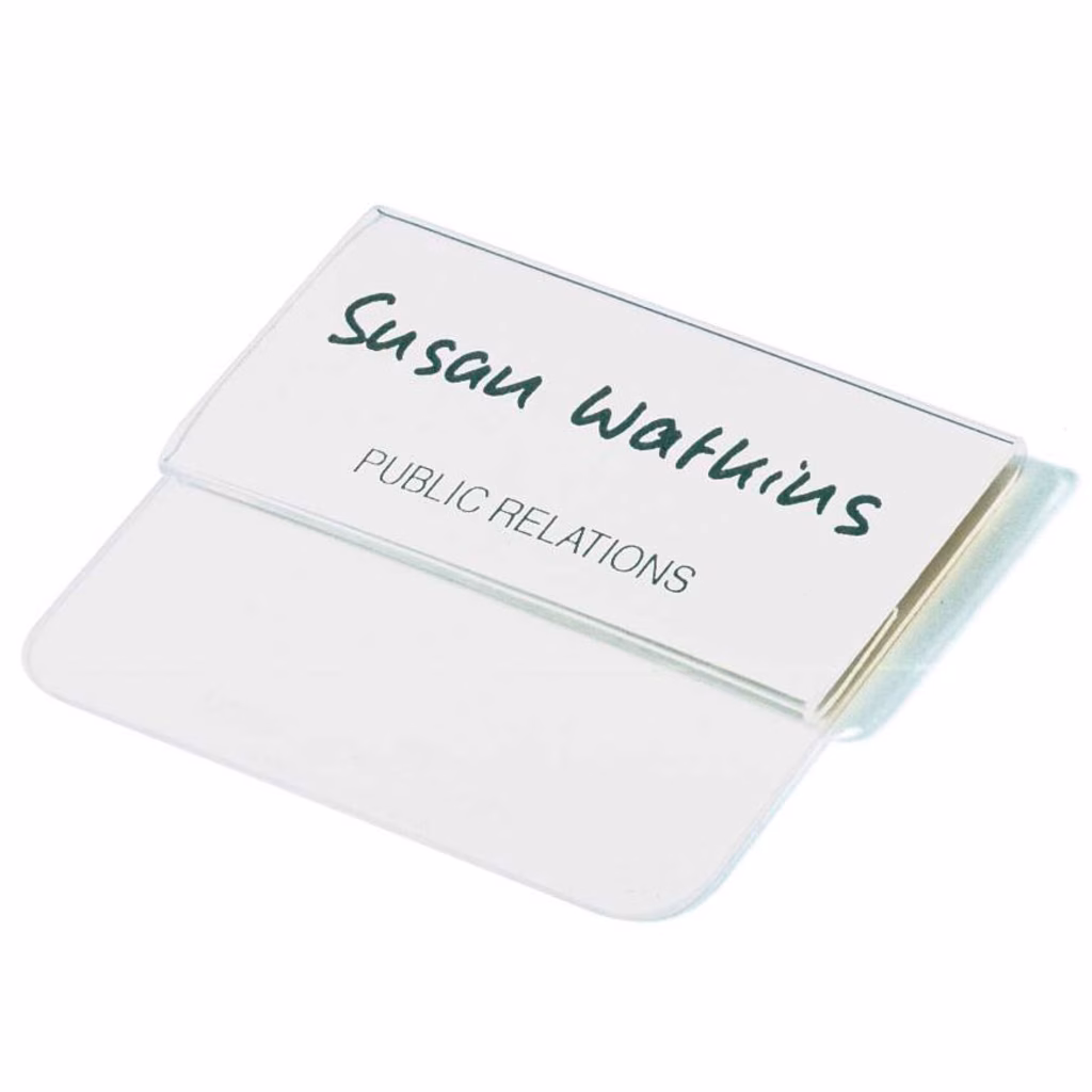 • Portanome in acrilico con aletta, ideale per taschini di giacche e camicie
