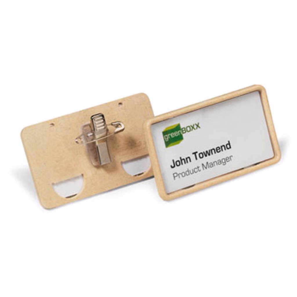 Portanome rigido ecologico con combi clip - realizzato con il 70% di lignina ed il 30% di polipropilene riciclato - il pannello frontale è realizzato con almeno il 70% di polietilene riciclato - inserto in cartoncino incluso nella confezione - gli inserti possono essere facilmente personalizzati on-line tramite il software gratuito DURAPRINT® su www.duraprint.it