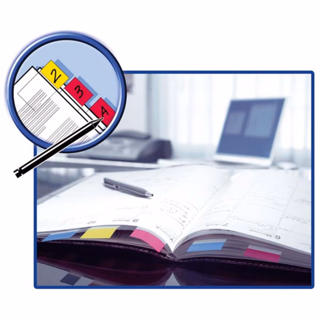 50 segnapagina dotati dello speciale adesivo Post-it® che li rende riposizionabili - non coprono i testi perché trasparenti - superficie scrivibile