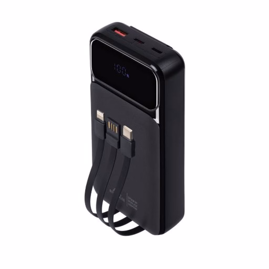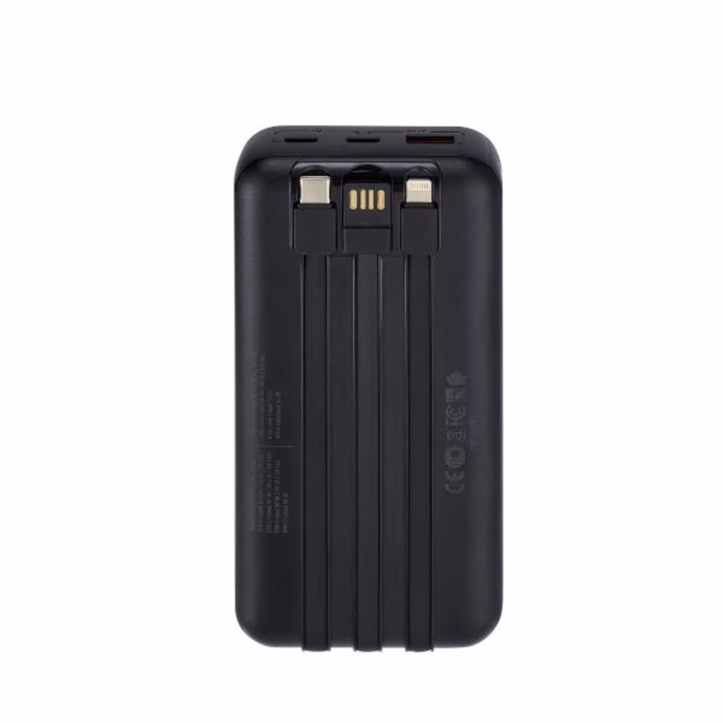 Battery Bank (20000 mAh) 22,5W fast charger con 3 cavi integrati ( di cui type C ed Usb con funzione ricarica ) Nera