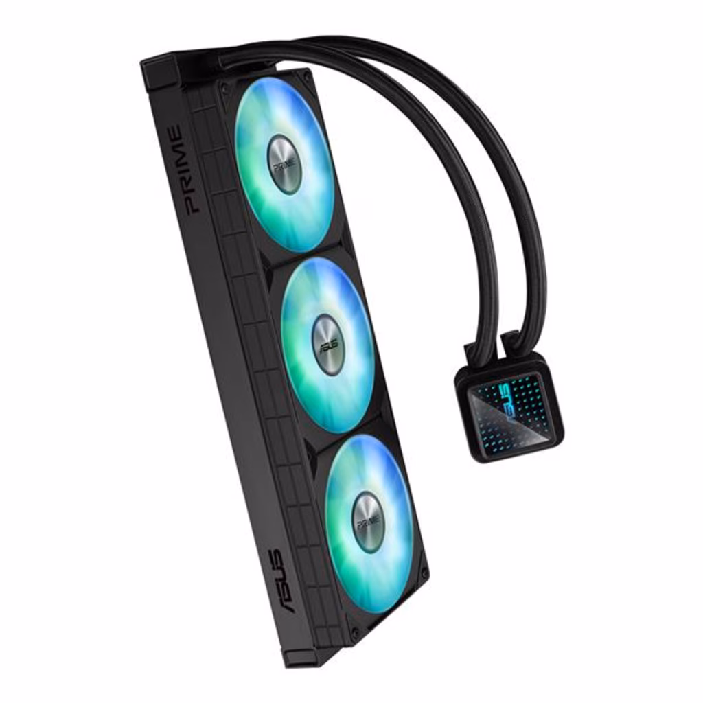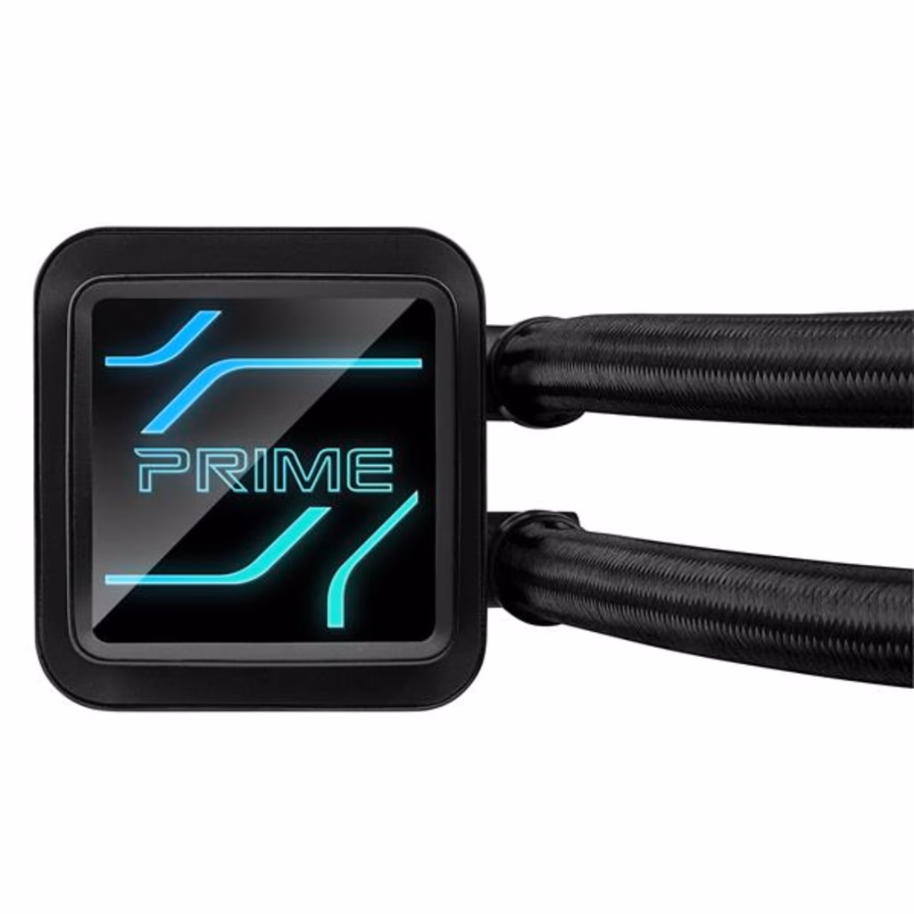 Dissipatore a liquido per CPU Prime LC ARGB all-in-one con area di contatto della CPU e canali alettati appositamente progettati, blocco dell'acqua con opzioni di lenti a specchio infinito, ventole ARGB preinstallate e illuminazione Aura.