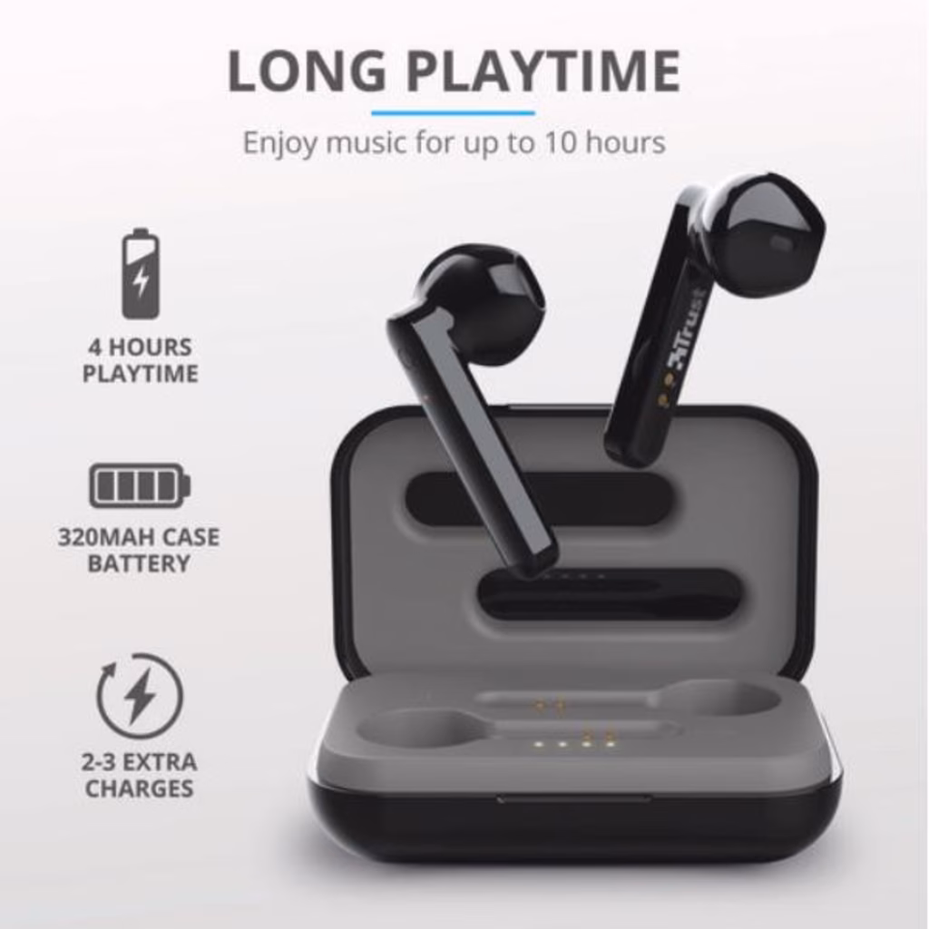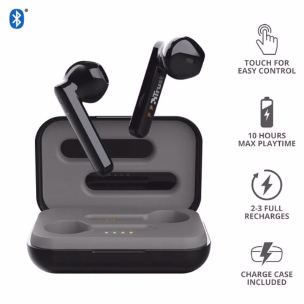Auricolari wireless per una libertà davvero estrema (portata: 10 metri). Fino a 3 ore di riproduzione con una singola carica. Ricarica allinterno della custodia che garantisce complessivamente fino a 12 ore di riproduzione.