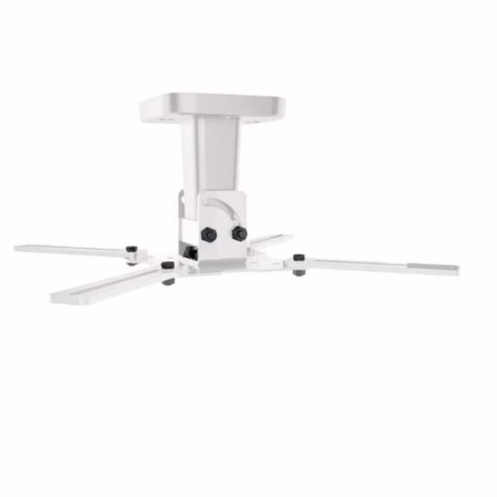 Supporto da soffitto per videoproiettore, 100% Made in Italy, può reggere apparecchi fino a 15 kg. Possibilità di inclinare il videoproiettore fino a 45° e di ruotarlo a 360°. Adattatori inclusi.