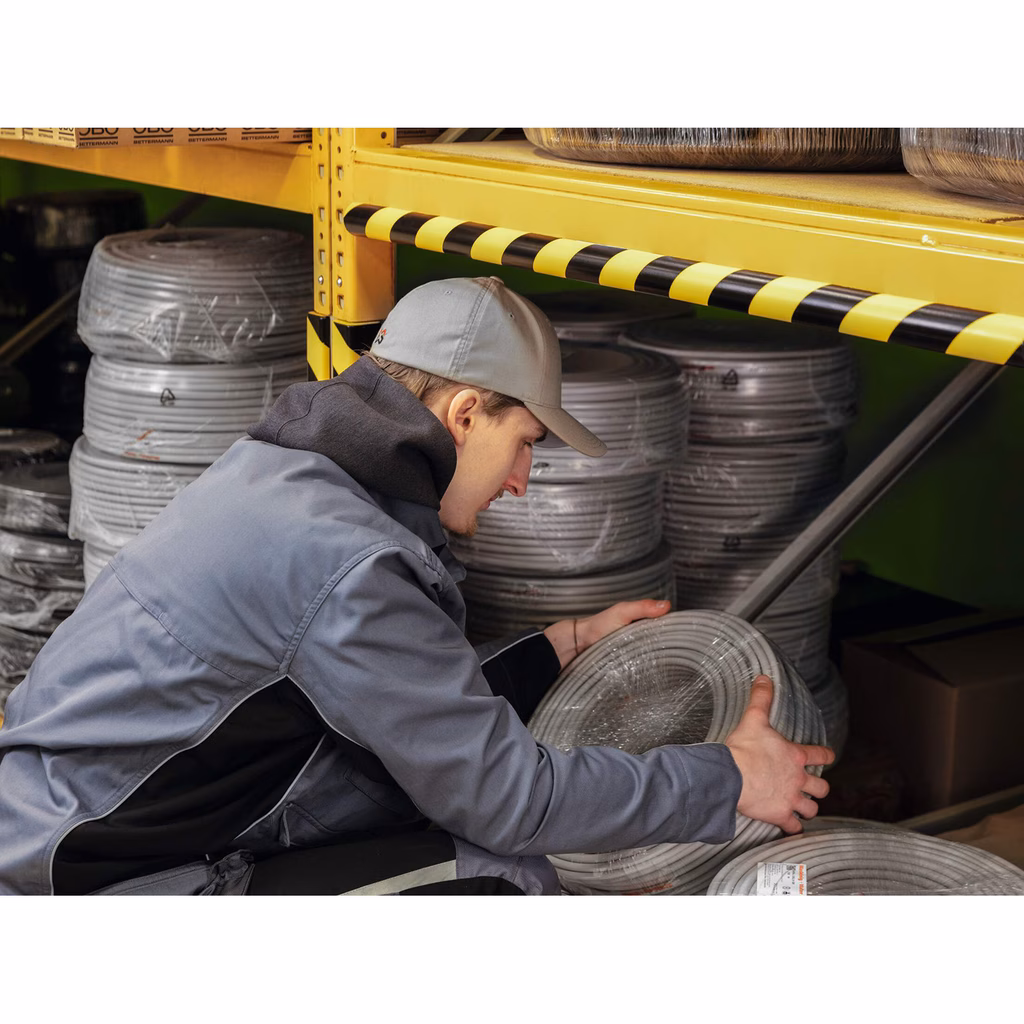 Profilo di protezione adesivo in schiuma poliuretanica flessibile 100% riciclabile - Utilizzabile in ambienti interni come aree di produzione, reparti spedizioni e magazzini, scantinati, scale, garage,su pareti e travetti, scaffali e armadi, nonché su macchine, carrelli di stoccaggio, ecc. - Adatto per segnalare punti pericolosi, proteggere superfici e pareti e prevenire infortuni dovuti a urti - Resistente adesivo lungo tutto il retro del profilo - i profili possono essere tagliati alla lunghezza desiderata - Colore simile a RAL 1004/9003 (giallo segnale/nero segnale) - Classe di incendio conforme alla norma DIN EN 13501-1 / classe E- Resistente a temperature da -30°C a +70°C