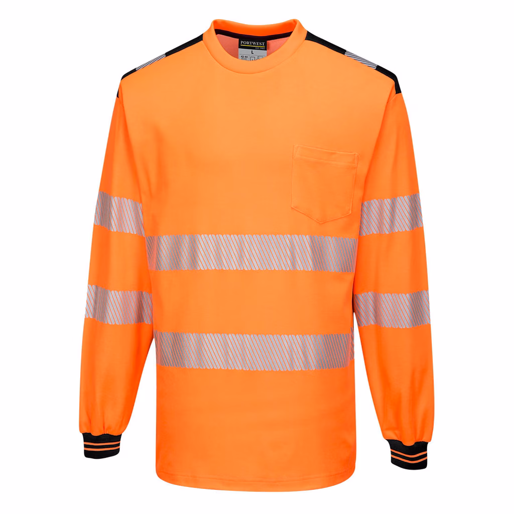 Pw3 t-shirt manica lunga hi-vis PORTWEST T185 colore arancione/nero taglia XXXXXL
