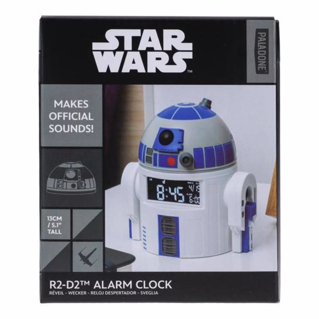 Inizia la giornata in modo pratico e giocoso con questa sveglia R2-D2. La sveglia a forma di droide, alta 13 cm (5"), è dotata di un display digitale che indica l'ora e la data. Riproduce i suoni ufficiali di R2-D2 per svegliarvi al mattino.