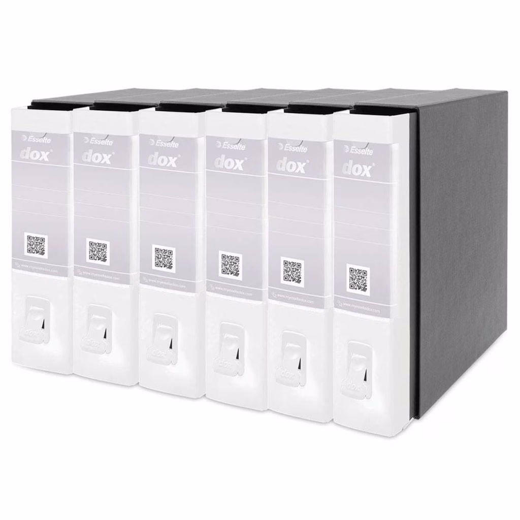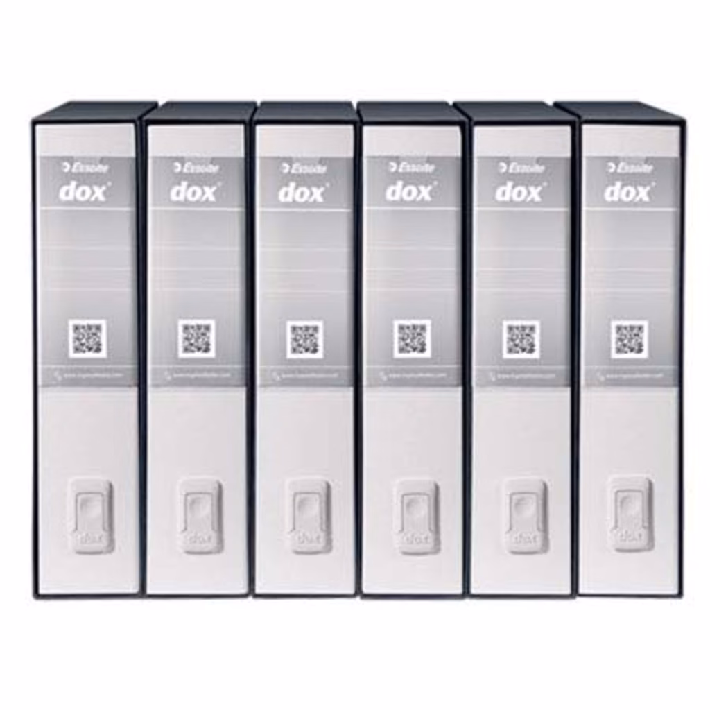 Dox si trasforma in registratore intelligente grazie a myDox app: la soluzione facile e immediata per archiviare e reperire documenti - da oggi è possibile conoscere il contenuto del tuo Dox senza aprire l'archiviatore e scoprire in quale Dox è archiviato un documento che non trovi - inoltre con myDox app puoi condividere l'archivio con i colleghi e avere accesso on line tramite pc e mac - il registratore a leva Dox 2 è rivestito con carta goffrata antimpronta e rifinito con paralati metallici alla base della plancia - dotato di un meccanismo a leva in acciaio nichelato con pressino, linguetta di estrazione a scomparsa e portaetichette con etichetta reversibile - la custodia è rivestita con carta nera goffrata trattata antimpronta con interno nero - ogni Dox possiede un codice qr univoco (stampato direttamente sull'etichetta o incluso al suo interno nel volantino) - il volantino all'interno contiene inoltre 3 semplici indicazioni per come scaricare la app su app store e google play