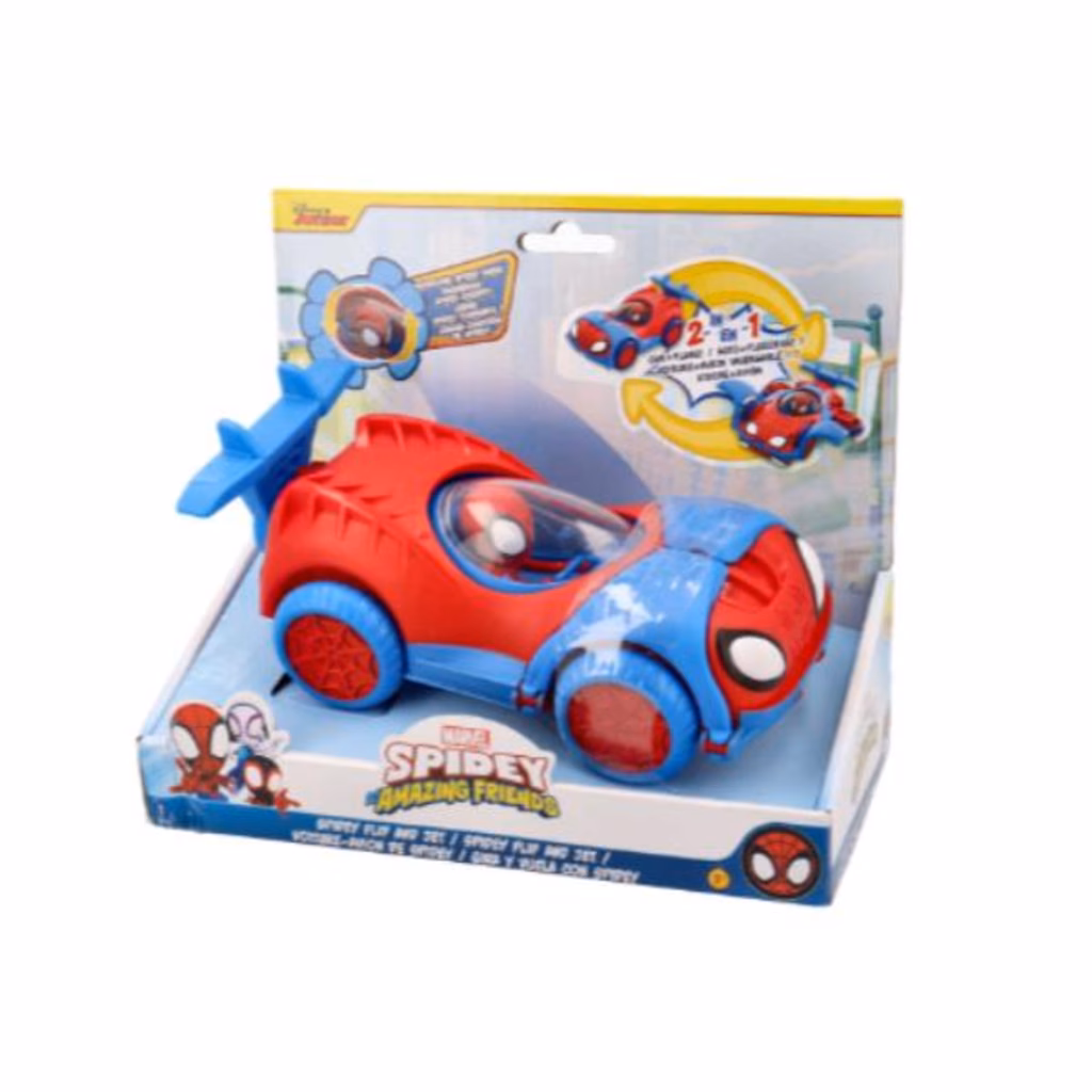 VEICOLO SPIDEY FLIP AND JET 2 IN 1 , IL VEICOLO SPECIALE A SI TRASFORMA DA MACCHIN IN UN JET. PREMI, RUOTA E APRI ED IL TUO JET DI SPIDEY COMPARE PER AFFRONTARE CON IL TUO SUPER EROE FANTASTICHE AVVENTURE SUPER DIVERTENTI !!!!!