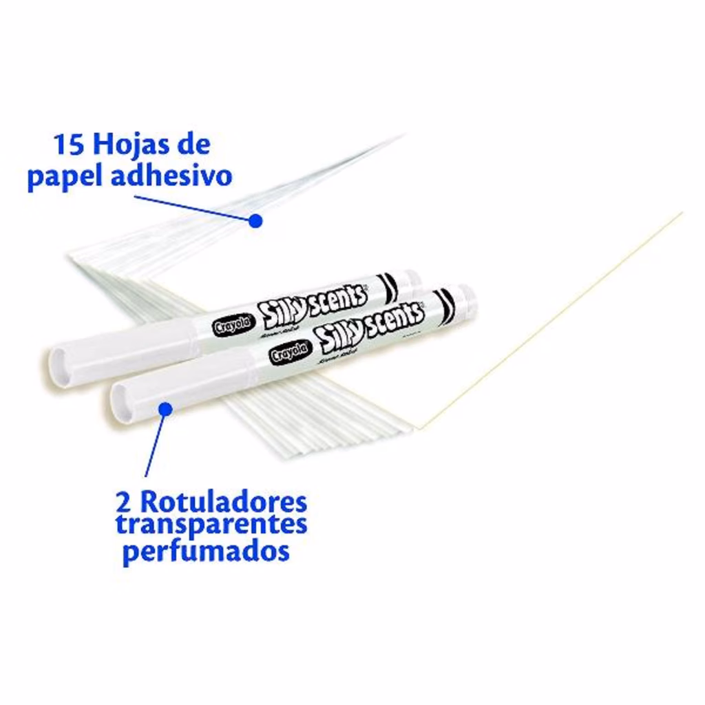 Contiene 15 fogli di carta adesiva e due pennarelli trasparenti profumati al profumo cocco e banana. Trasforma in adesivo foto, ritagli e immagini e decora quaderni, diari e ciò che vuoi.