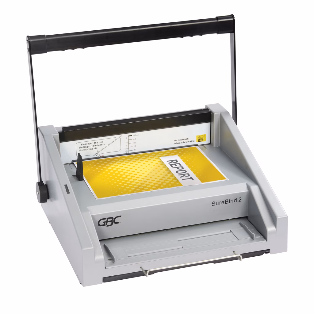 Questa rilegatrice per impieghi gravosi ha una capacità di perforazione manuale di 20 fogli. Questo raccoglitore perfora in modo efficiente 10 fori per i pettini Surebind A4 e rilega in modo sicuro fino a 500 fogli utilizzando pettini da 2".