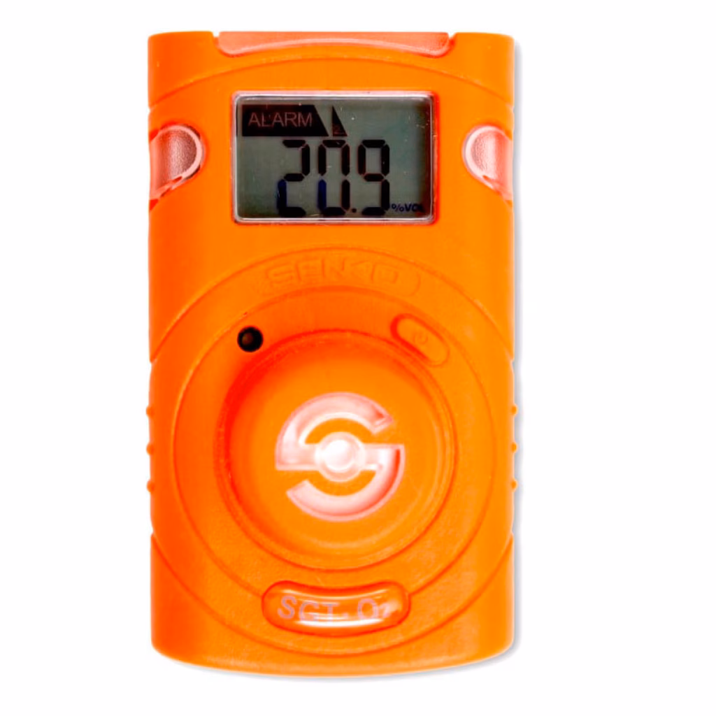 Rilevatore monogas portatile,uso: 2 anni di autonomia senza necessità di sostituire il sensore - lettura in tempo reale per il rilevamento di uno dei seguenti gas: ossigeno O2, monossido di carbonio CO, solfuro di Idrogeno H2S,biossido di zolfo SO2, diidrogeno H2, ammoniaca NH3, schermo LCD di facile lettura, menù integrato per la consultazione di informazioni, include un software per la configurazione dei valori del dispositivo e la programmazione degli allarmi, notifica di allerta attraverso luci rosse, vibrazione e suono, certificato ATEX per lavori in ambienti esplosivi, possibilità di scaricare i dati degli ultimi 30 allarmi, dispositivo robusto e resistente a polvere e sostanze liquide IP67, colore arancione per una rapida identificazione visiva del dispositivo