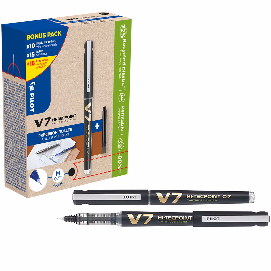 Roller colore nero PILOT HI-TECPOINT V7 ricaricabile Begreen punta fine mm 0,7 (roller + 10 refill)