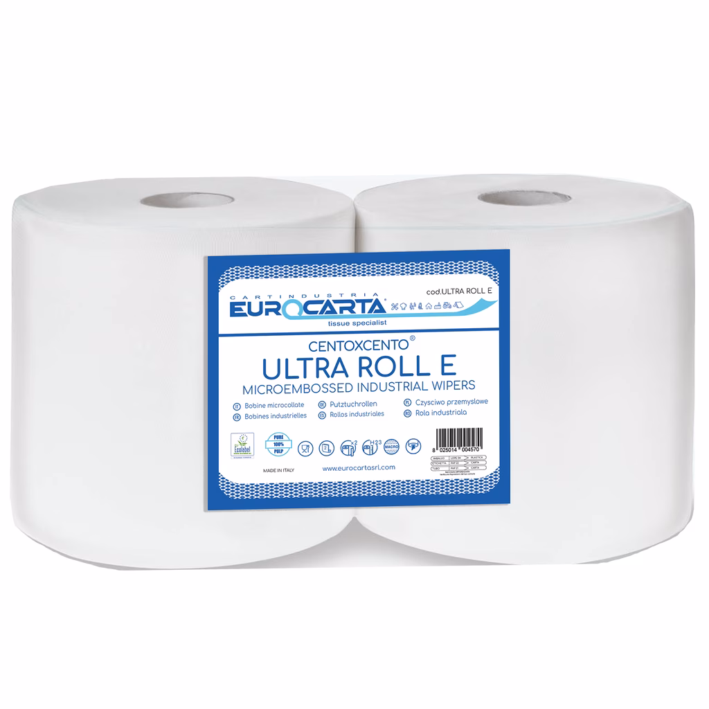 Rotolo industriale EUROCARTA ULTRA ROLL 2 veli 495 strappi metri 110