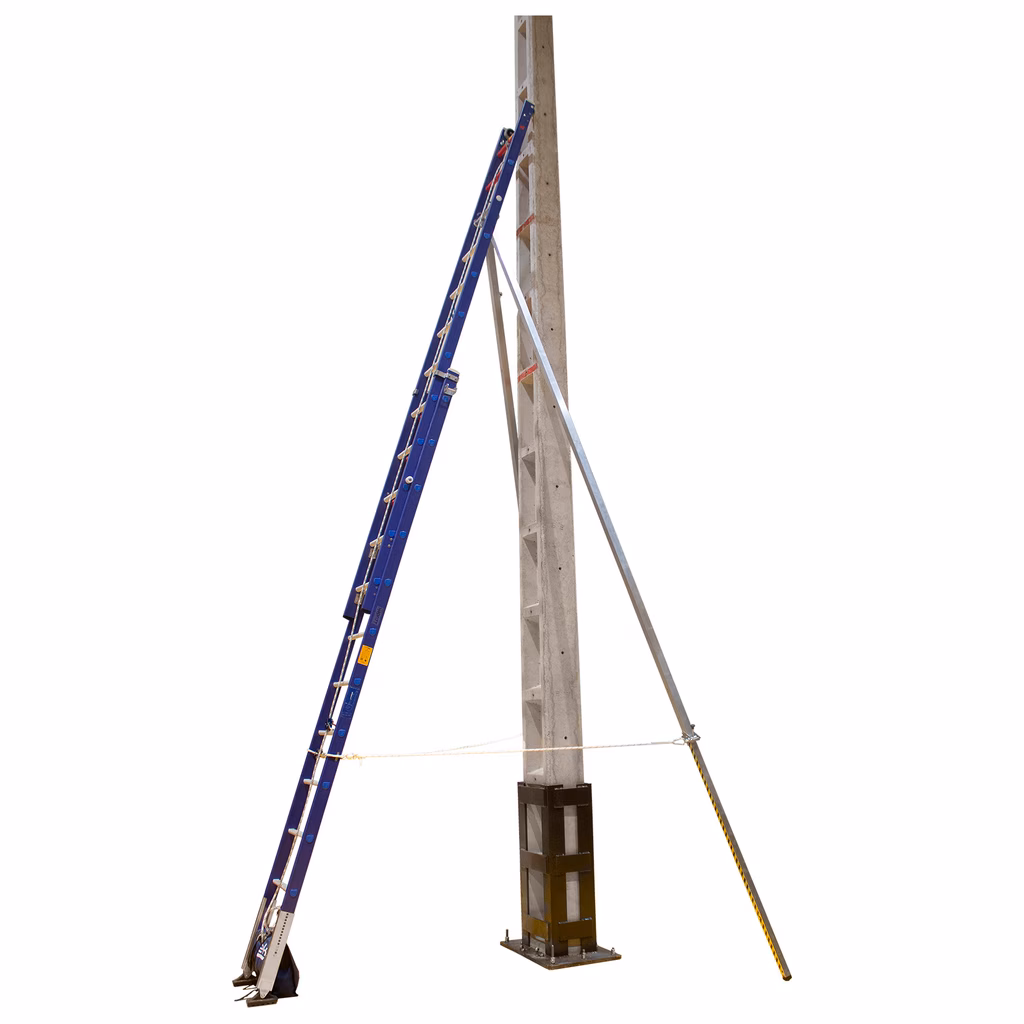 IRULADDER è una scala telescopica certificata come sistema di ancoraggio in conformità alla norma EN 795 B. Essa è fabbricata in poliestere rinforzato in fibra di vetro che le conferisce una resistenza unica nel mercato. La scala è dotata di 2 anelli di ancoraggio PR07, uno sul primo piolo e laltro sullultimo piolo, che permettono di lavorare in modo sicuro ed essere pronti a realizzare un eventuale recupero dellin fortunato in caso di caduta. l sistema è fornito con una corda di posizionamento che permette di assicurare la scala ad un palo stabile, senza la necessità di utilizzare le gambe.