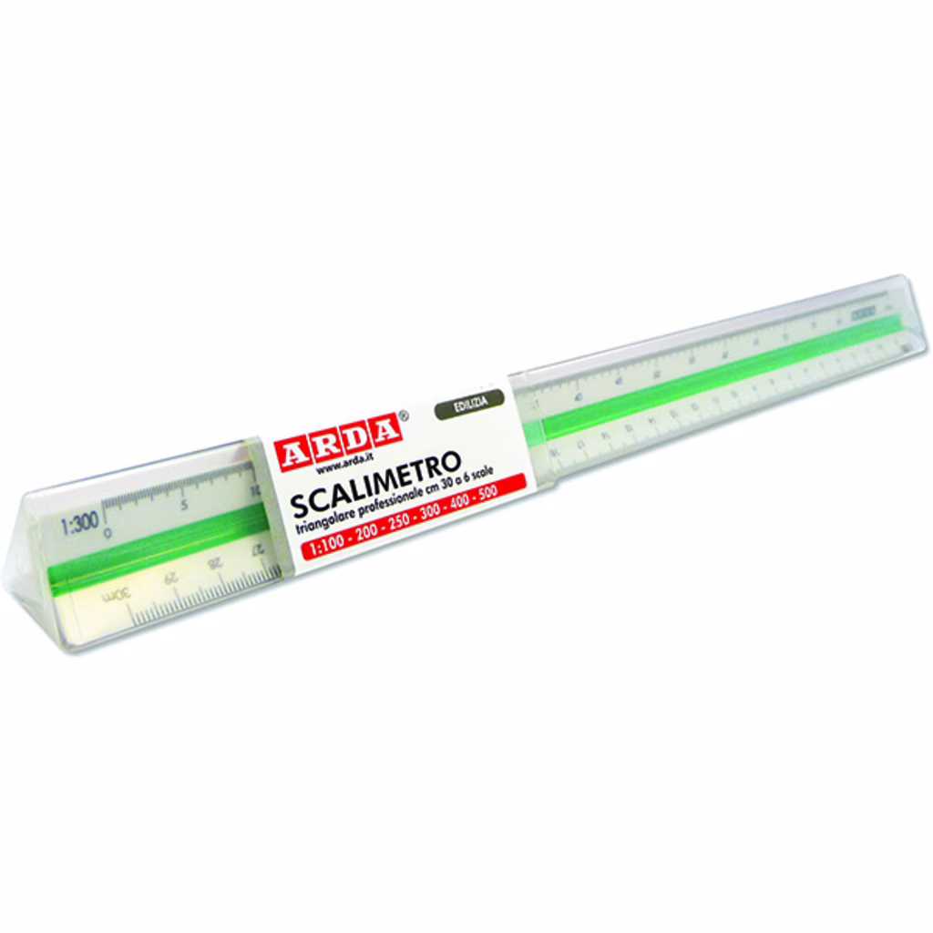 Scalimetro professionale a 6 scale con astuccio trasparente - rapporti di riduzione da 1:100, 200, 250, 300, 400, 500 - dimensioni 30 cm