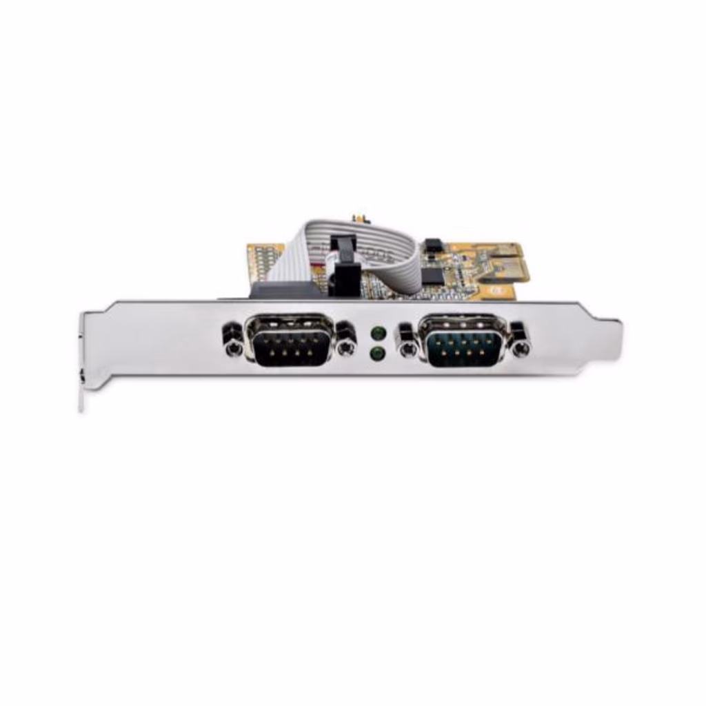 DA PCIE A SERIALE: Collega dispositivi seriali RS232 (DB9) a un computer con questa scheda seriale per PC a basso profilo - Supporta l'UART 16C1050 ad alte prestazioni su entrambe le porte DB9 maschio - Controlla l'attività con le luci di stato LED integrate sulla scheda