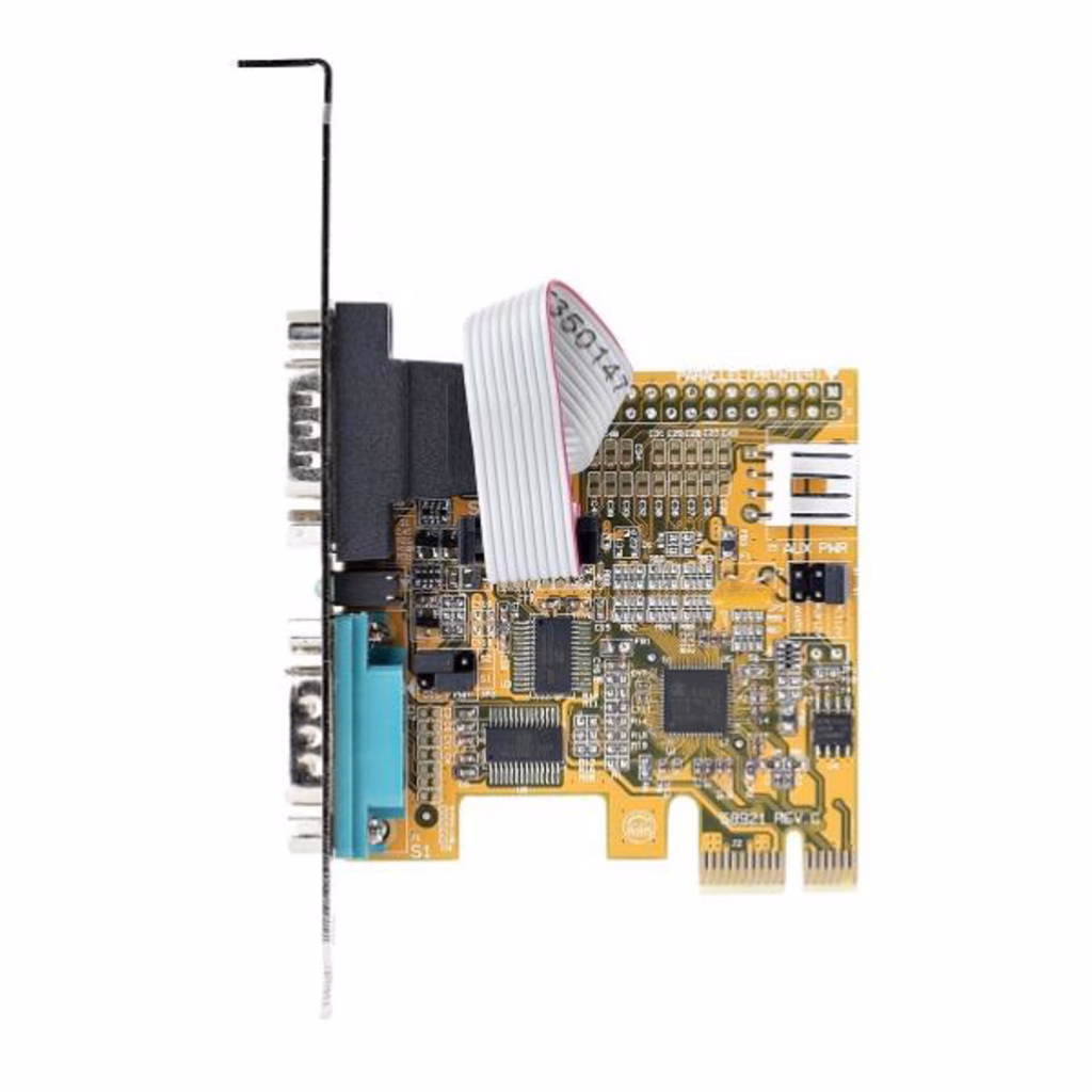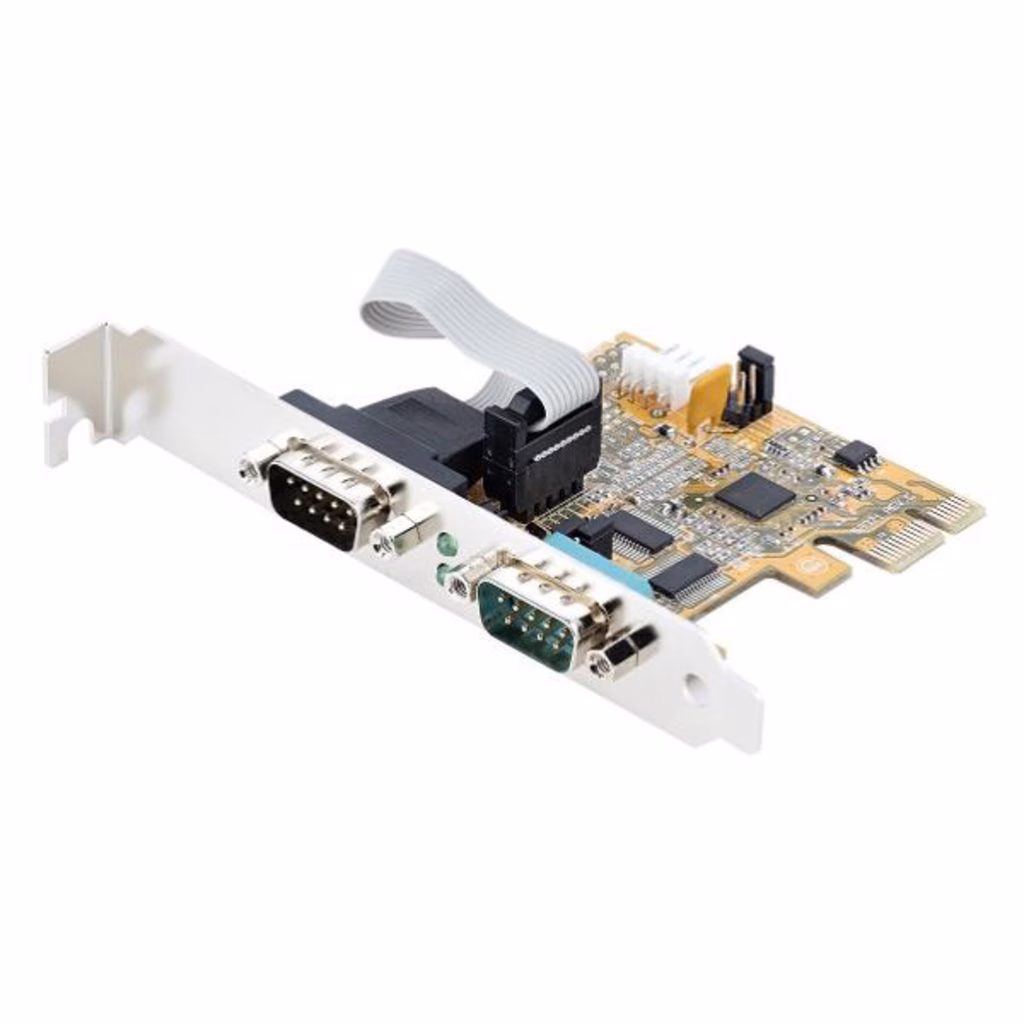 Da PCIe a seriale: Collega dispositivi seriali RS232 (DB9) a un computer con questa scheda seriale per PC. Supporta l'UART 16C1050 ad alte prestazioni su entrambe le porte DB9 maschio. Controlla l'attività con le luci di stato LED incorporate sulla scheda.                                                                                        Compatibilità dei dispositivi: Usa questa scheda seriale per collegare lettori/scanner di codici a barre, stampanti di ricevute, bilance, PLC, dispositivi medici, ecc. La scheda UART PCIe fornisce un'alimentazione di 5V o 12V sul pin 9.                                                                                        Applicazioni: Scheda seriale ideale per applicazioni IT come sale server, controllo industriale/automazione, logistica, laboratori. Usare l'hardware legacy con questa scheda RS232 PCIe. Le porte DB9 accettano cavi seriali con bloccaggio a vite.                                                                  Specifiche: 16C1050 UART, Max Baud 921.6 Kbps per porta. 256 Byte FIFO. Ritenzione COM.                Supporta Windows e Linux. Chipset Asix AX99100, Odd/Even/Mark/Space/None Parity Modes, PCIe 2.0 x1. Staffe Basso Profilo incluse