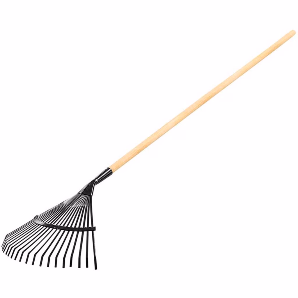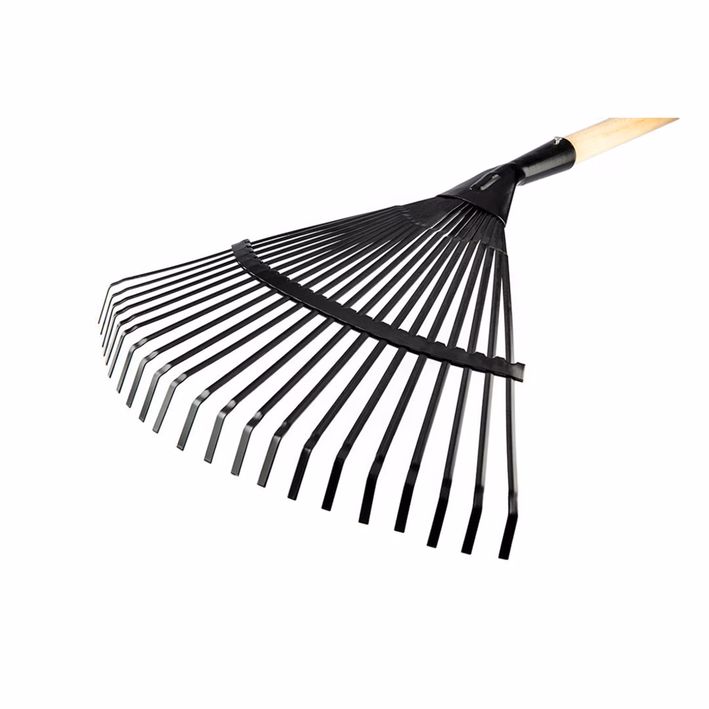 Scopa per foglie, 21 denti in lamina di metallo, manico in legno