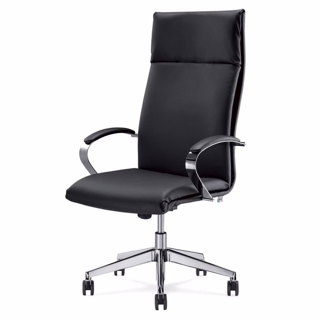Sedia direzionale EQUIPE schienale alto con oscillante pelle nera