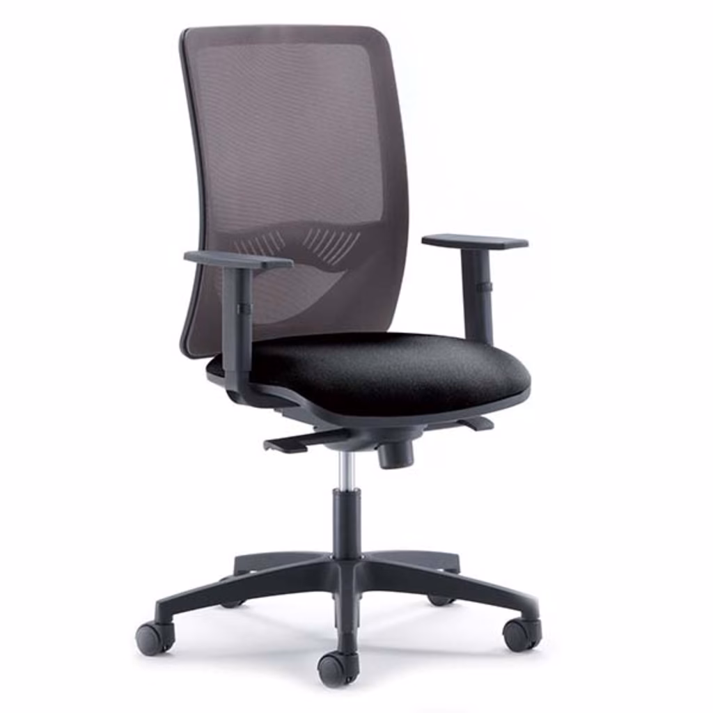 RIO è una sedia operativa dal design giovane ed essenziale - Con il meccanismo synchron, la forma ergonomica dello schienale e il relativo supporto lombare integrato risponde perfettamente alle principali necessità di una sedia da ufficio - Sedia operativa con schienale in rete ignifuga colore nero - Meccanismo synchron con blocco in piu' posizioni, antishock e tensionatore per regolazione resistenza oscillazione in funzione del peso dell'utilizzatore - Braccioli regolabili in altezza - Base a 5 razze in nylon nera su ruote gommate - Sedile rivestito con tessuto ignifugo Bond - Certificata UNI-EN1335" B" - In fase di Omologazione Classe 1IM - Garanzia 5 anni