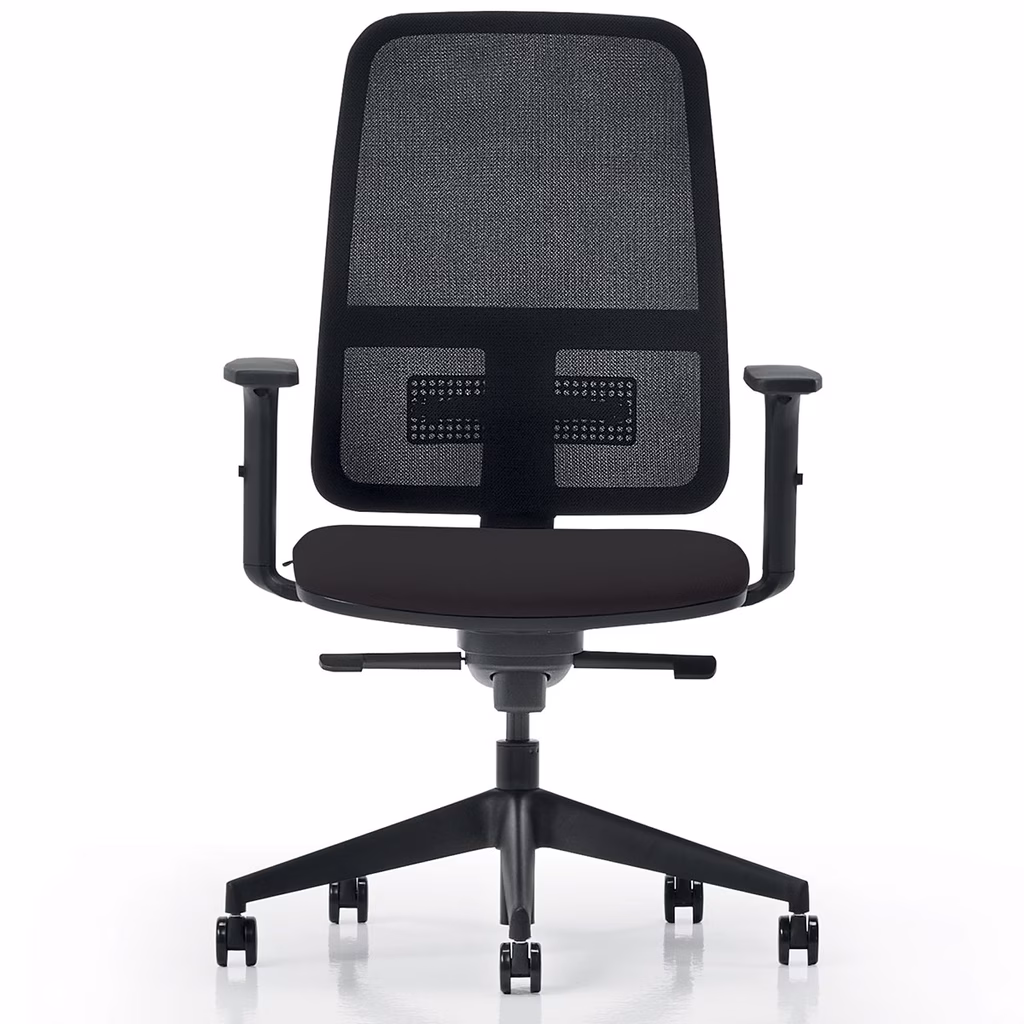 Sedia operativa WIN nella versione con struttura nera, senza poggiatesta imbottito regolabile, schienale in rete inghifuga colore nero. Movimento regolato da meccanismo synchron multiblocco dotato di regolatore di resistenza in funzione del peso dell'utilizzatore, tramite supplemento è possibile richiederlo nella versione con traslatore per consentire la regolazione in profondità del sedile. Base in nylon piramidale Ø69cm a 5 razze nera, tramite supplemento in alluminio. Ruote diametro 65mm gommate autofrenanti, tramite supplemento richiedibili nella versione cromata. Braccioli regolabili in altezza 1D, tramite supplemento è possibile richiederli del tipo 4D con poggiabraccia in PU morbido. Supporto lombare regolabile in altezza. Imbottitura in resina poliuretanica ad alta densità. Rivestimento in tessuto ignifugo Mirage (test usura 100.000 cicli Martindale).